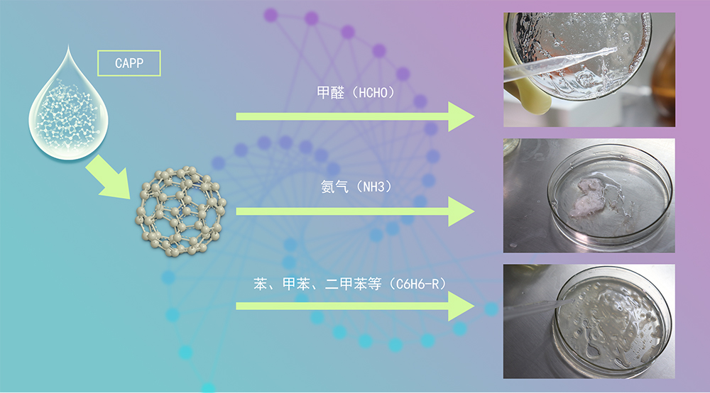 室溫狀態下,CAPP可以快速捕獲甲醛、苯系物、胺類化合物。