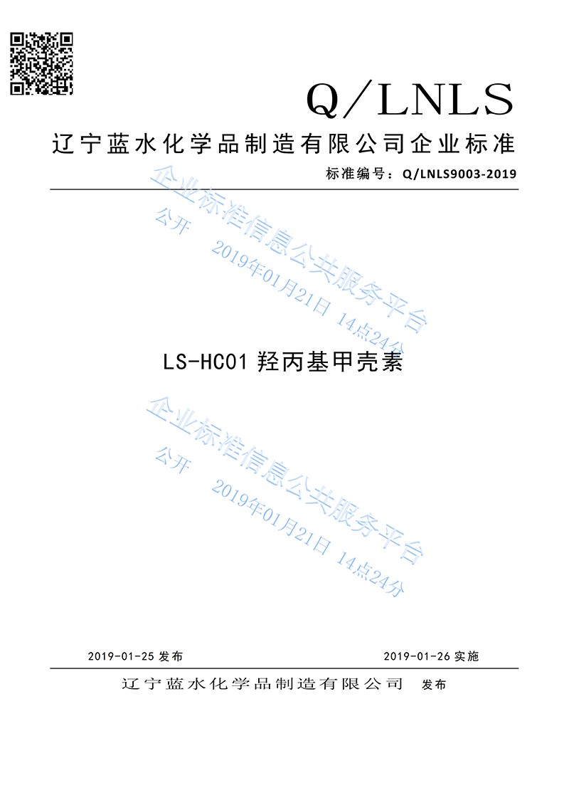 標準名稱:LS-HC01羥丙基甲殼素標準編號:Q/LNLS9003-2019連接地址:http://www.cpbz.gov.cn/standardProduct/showDetail.do?innerCode=Q-91210124671980812M-201901211424-0002&token=2b896440-7f26-4b6d-9589-881c2019168e 附件:Q_LNLS9003-2019LS-HC01羥丙基甲殼素最新.pdf公開時間:2019/1/21 14:24